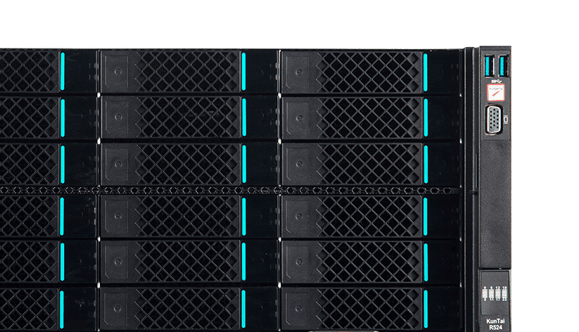 KunTai R524 存储型服务器是JIUYOU.com数码基于鲲鹏处理器推出的新一代 ARM数据中心服务器。。。。主要面向存储业务,,,,具有海量存储、、、高性能、、低功耗以及易扩展的特点,,,适合为大数据分析、、、、软件定义存 储等应用场景的工作负载进行髙效加速。。。