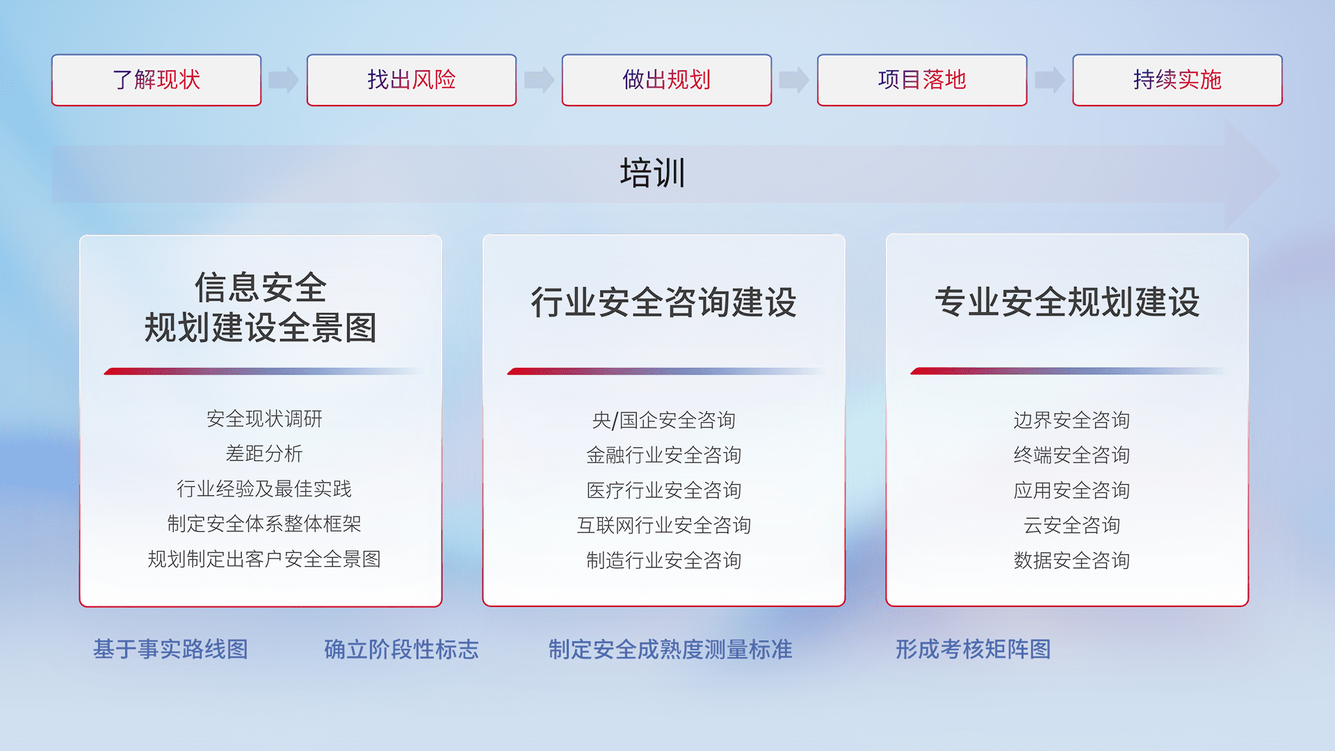 通过专业的法律咨询解读、、、、合规架构体现、、、、差异化解决方案、、、测试实施支持等服务,,,,为客户量身打造等保合规体系。。。